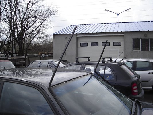 Az gyorsan kiderült, hogy a díszléc alja masszívan áll, leszakadni tehát nem fog, ezért megpróbáltuk a tetejét rögzíteni egy névjegykártya cafatjaival, hátha eléggé beszorul. Persze nem tette, 2 km-rel később ismét elszabadult. Nem volt mit tenni, így mentünk a munkahelyemig. Útközben kiderült, hogy a bal első futómű kissé kotyog, de ezzel együtt stabil, a fék rendben, a motor és a váltó teszi a dolgát. Milliónyi apró elektromos szir-szar azonban nem, vagy nem korrektül működik, lesz tehát tennivaló.
