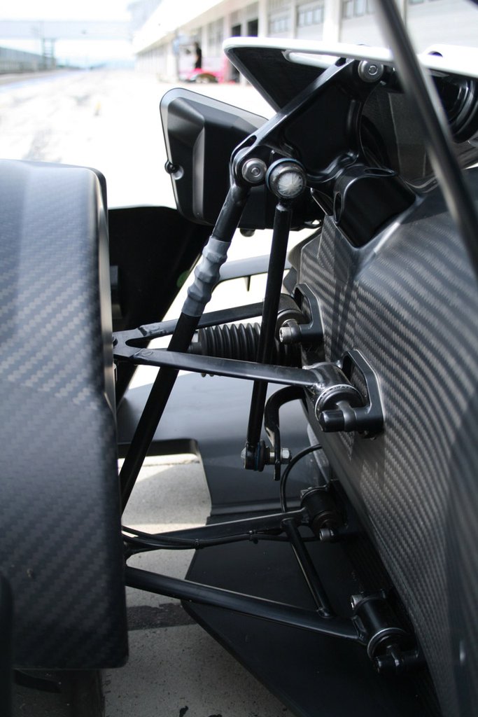 Ha az ember túljut a nehezén és átpasszírozza magát a réseken, amiket a kormány és az ülés hagynak szabadon, lent már egész jó a komfort. Bármerre nézek, karbonborítás vesz körül, csakhogy ez itt nem borítás, hanem maga az autó. A masszív pedálsor, amiben bármelyik egység lenyomásához jobban meg kell feszíteni az izmokat, mint bármelyik átlagos személyautóban, előre-hátra mozgatható. A kormányban van egy rakat gomb, amelyekből pályán csak a stopper nullázójára van szükség. A többi megmarad a pojácáknak, akik a X-Bow-val közúton indexelni vagy dudálni akarnak. Nem oda való az ilyen, higgyék el, hiszen ez egy istenverte műszer!