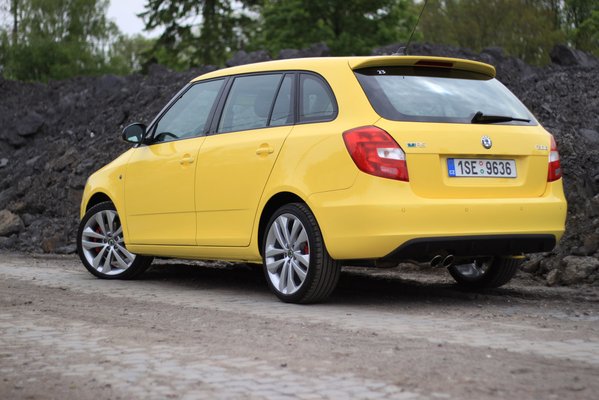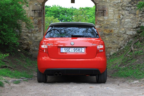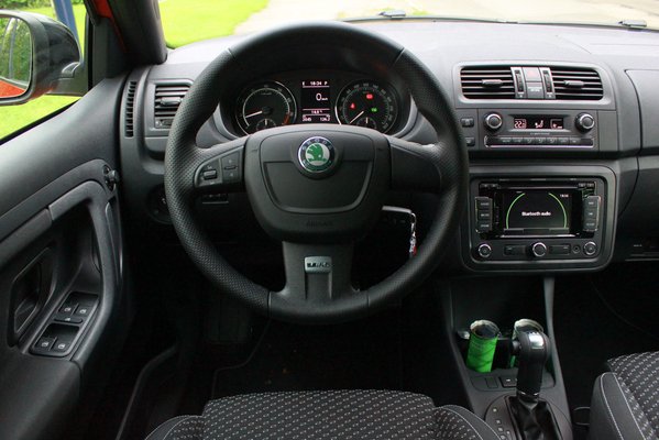Az alapmodellhez képest minimálisak a változtatások, mégis könnyen megkülönböztethető. Egy leheletnyi toldás az első kötényen, egy jelképes diffúzorutánzat hátul. Egy igen konzervatív dupla kipufogó, és hogy tudjuk, mi előzött le, néhány RS felirat. Piros féknyergek és állítólag funkcióval is rendelkező tetőspoiler. A koptató léceket színre fújták, de a tükrök szigorúan feketék maradtak. Belül RS felirat a kagylós ülésen és a bőrkormányon. Természetesen mindkettőt lehet állítani előre, hátra, fel és le. A kamualu belépő szintén felhívta RS-mivoltára a gyanútlan sofőr figyelmét. Néhány túlságosan élénk színkombinációt leszámítva kifejezetten ízléses, teljesen hihető a hot hatch hangulat. Sokkal jobban sikerült, mint elődje. Az első Fabia RS dízel mivoltát tetézte azzal, hogy úgy nézett ki, mint egy orrbagyűrt Octavia. Az új Fabia RS úgy tagozódik be az egységes arculatba, hogy közben egyéniség marad.
