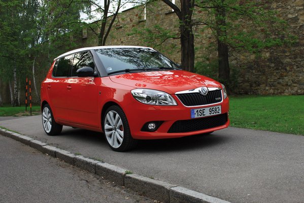 A Mini óta ez a kombináció már közhely, de akkor is nagyon jól állt neki. Főleg, amikor a megadott útról letérve megálltunk Mladá Boleslavban, a Škoda múzeumnál. Mivel már zártak, nem tudtunk körülnézni, de a parkolóban állt egy piros, alap Fabia. A két autót egymással szembeállítva látszik csak igazán, milyen jót tett neki az RS-optika. Ráadásul ezzel a színkombinációval kiköpött Nohab.