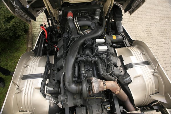 Hűtőlevegő- és helyigény. E két tényező hiúsította meg a Scania V8-asok kipufogógáz-visszavezetéses (EGR) kivitelét. Pedig a technológia rendelkezésre állt, mint azt az Euro 5 kompatibilis hathengeres motoroknál láthatjuk. Az adalékmentes motorüzem ott vérzett el a V8-asnál, hogy a kipufogógáz-hűtők egyszerűen nem fértek el a fülke alatt, és a szükséges mennyiségű hűtőlevegő hozzávezetése is problémákba ütközött. Nagyobb fülkét pedig csak a szállított áru rovására lehetne készíteni, de azt jelenleg nem fogadja el a piac.