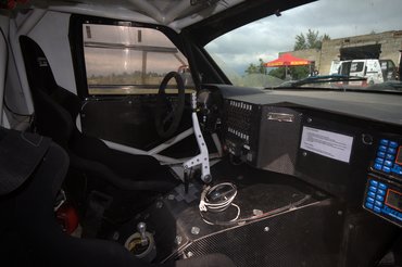 Szóval a 390–400 lóerős, MOTEC-vezérelt motor adott. Aztán ott az összkerekes hajtáslánc elöl-hátul önzáró X-Track difikkel és a szekvenciális váltóval. Köztük pedig egy fura kis egytárcsás kuplungszerkezet, ami kis megszokást kívánt. Már csak azért is, mert szinterkuplung ide vagy oda, azért nagyon óvatosan kellett kezelni. Nem lehetett a motort felpörgetve leugrani róla, mert a gigantikus nyomaték hamar tönkrevágott volna mindent. Még menet közben sem volt tanácsos leugrani a pedálról. A legsűrűbben fellépő hiba is a nyelestengelyhez kapcsolódik, cseréje 4–4,5 óra, Balázs szerint.
