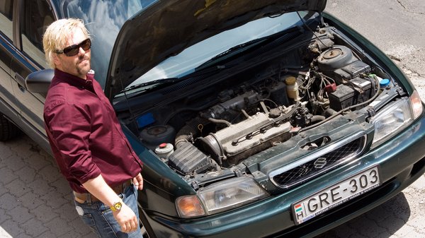 Nem volt könnyű élete. Gábor 150 ezer kilométerrel vette a volt cégautót, fizetett 730 ezer forintot, aztán rakott még bele 40 ezret két év alatt. Az én autómban is ennyit mutat az óra, de az belül lényegesen jobban néz ki. Persze csaltam, átbőröztettem a kormányt és az első üléseket, meg a Tehén értelemszerűen cégautóként sem szolgált. A Baleno két év alatt viszont egy kuplungcserét kapott. A kuplung most se a legjobb, de szerkesztőségi alkatrész-nagykereskedőnk, Prokee szerint a Balenókhoz nagyjából ez is az egyetlen alkatrész, amit keresnek. Olcsó hozzá minden, kivéve a karosszériaelemeket, amik kétszer annyiba kerülnek, mint a Swifthez, de a Swift elemek amúgy is olcsók. Balenót nem önhibásan kell törni, ez a lényeg. Egyébként ma már simán kapni Balenót 5–600 ezer forint között is.