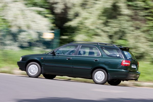 Szép tiszta forma, nem nagyon karakteres, inkább finom vonalakkal. Tudom, nehéz ezekben meglátni a szépséget, de nekem nagyon megy, igaz, nekem még a Csikós Ezeréves Sólyom névre hallgató ős Mazda 626-osa is tetszett. A Baleno inkább a Toyota Carina E-stílus, persze az nagyobb, drágább és a belseje is elegánsabb. Ez csak használati tárgy, családi minimálkombi, aki azért kétszólamú dudával adja a világ tudtára, hogy ő igenis nagy autó, nem egy szaros Swift. A hátsó oldalajtók persze megegyeznek a szedánéival, de akkor is: Indiában komoly limuzin, az ziher. Viszont vannak szép, modern tetősínei, szárnya meg a puttony oldalablakára szerelt mobiltelefon-antenna, nyilván még a Nokia hőskorából.