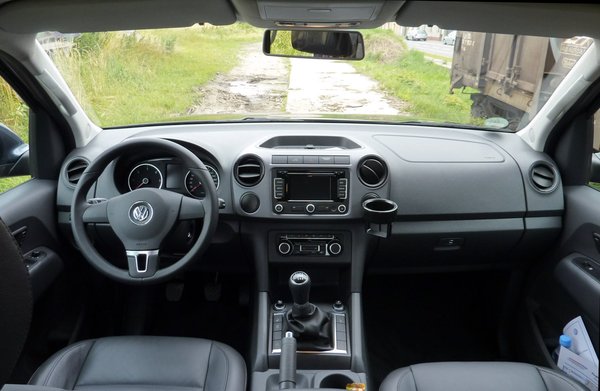 A műszerfal és a középkonzol mindegyik változatnál egyforma, 99 százalékban ismert konszernalkatrészekből építkezik, az óracsoport is a Golfé, egyedül a hátsó megvilágítás tekerőgombja volt új. Alapverziónkban azonban le volt dugózva a 12 voltos aljzat a műszerfal tetején (kár, mert nagy ötlet). Elhagyták a könyöklőt is, illetve a középső üreg fedelét, azért annak pereme folyamatosan nyomta a könyököt. A műanyagok kemények, ridegek, ez ebben a kategóriában teljesen elfogadott, a kidolgozás minősége átlagos. Nem egy Audi-féle maximalizmus, de bőven hozza a Navara vagy a Hilux szintjét.