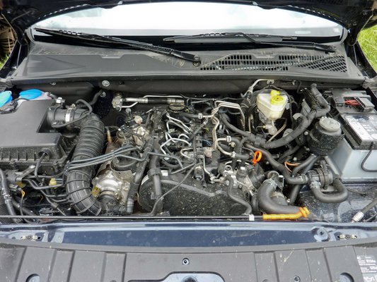A 163 lóerős két turbófeltöltőt kapott, ez a konfiguráció talán ismerős lehet a VW más modelleiből. A PR-főnök a motort taglalva külön kitért a megbízhatóságra és robusztusságra, mintegy megelőzve ezzel a kérdéseket. Ezek fix geometriájú feltöltők, egyszerű szerkezetek, szerinte ez garancia arra, hogy nem kell félteni a motort, bírni fogja az igénybevételt.