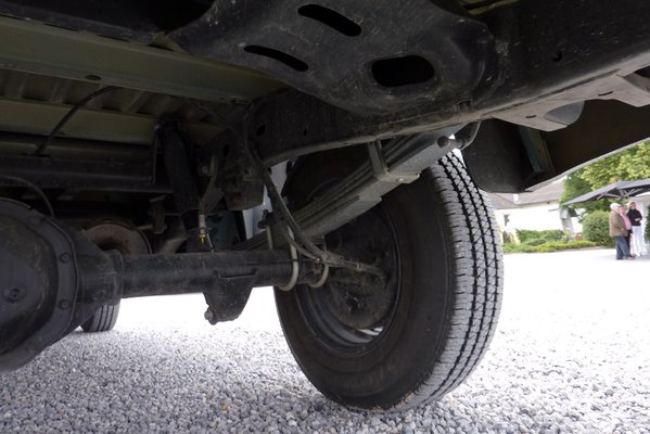 Alapjában véve a hátsó futómű két, masszív, ötsoros laprugókötegen rugózik. Illetve pattog. Menetkomfort szempontjából nem éppen ideális megoldás, ellenben 1147 kilóval terhelhetjük. Igen ám, de mi van azokkal, akik nem munkagépnek, szerszámnak vesznek meg egy ilyet és életük során sosem pakolják meg ennyire? Nos, ők a 4x2-es és az állandó összkerékhajtás mellé megkapják a már említett comfort futóművet. Ami egyben a világ legolcsóbb fejlesztése: az alap laprugókötegből oldalanként kivettek két-két laprugót. Olé! Egyszerű és működik.