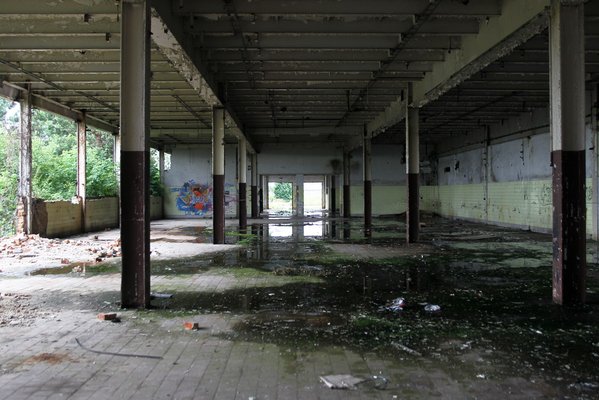 A valaha volt telep olyan, mint minden, magára hagyott gyár. Kitört ablakok, szétvert redőnyök és üvegcserép. Halkan ropog a téglatörmelék a kerekek alatt, ahogy átgurulunk a néhai teherportán, a portásfülke vakon figyel, odabent egy telefonkagylót lóbál a kitört ajtón besüvítő szél.