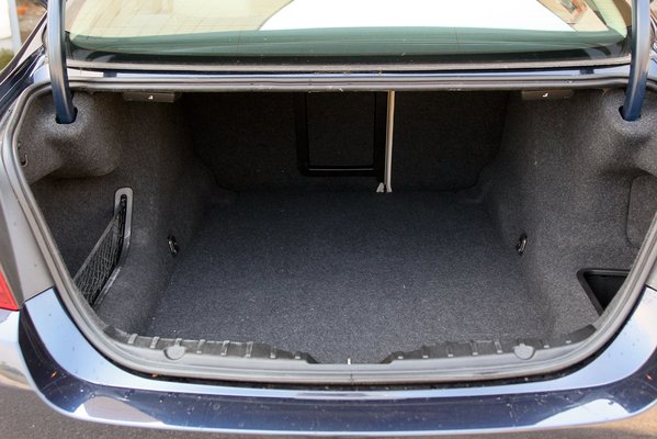 Tudtuk, mit kell tennünk, innentől kezdve olajozottan működtek a dolgok. Zsebemben kitapintottam a kulcsnélküli indítás kis plasztikdobozát és rányomtam a csomagtartó gombjára. Mire a felnyalábolt testtel odaértünk, már teljesen kinyílt a jókora nyílás. A csomagtartó mély, hosszan benyúlik a hátsó ülések mögé, 520 literes. Ez ugyan elmarad az E-Klasse 540-étől, de a néhai Zoé így is elfért a kofferek mögött, nem kell lehajtani az üléstámlákat (146 ezer). A leterített, fekete kertészfólia másik felét ráhajtottuk, majd visszaraktuk a három koffert. Egy gombnyomás és halkan zümmögve lecsukódott a fedél (163 ezer). Utazunk egyet, bébi?