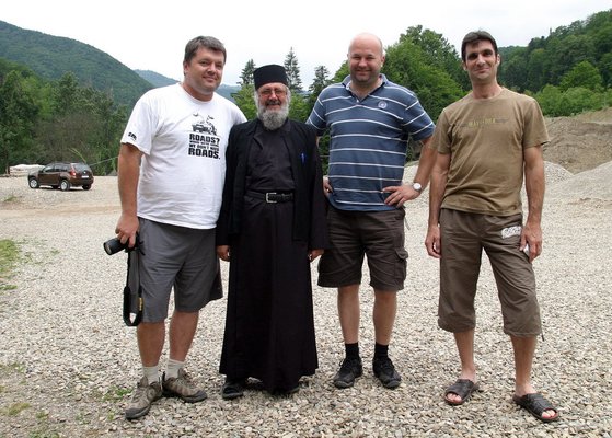 Miután magunkhoz tértünk, ismét a gázpedál kapott főszerepet, mert még világosban el akartunk jutni Gyimesbe. Balcani környékén jól eltévedtünk, de csak mentünk előre, hiába mondta Moha bá, hogy hülyeséget csinálunk, forduljunk vissza. Végül a világ végére értünk, ahol már csak favágók laktak meg ortodox szerzetesek egy kolostorban. Naná, hogy behajtottunk az udvarba, és ők, ahelyett, hogy kidobtak volna, megmutatták a templomot, majd meghívtak ebédre. Nifon atya elmesélte a falakat díszítő mind a száz szent életét, és csöppet sem zavarta, hogy már az ötödiknél elveszítettük a fonalat. Azután felbukkant Josif atya, aki kicsit beszélt magyarul, így a finom csorbaleves és a böjti káposzta mellett kellemesen elbeszélgettünk, hidakat építve zavaros vizek fölött.