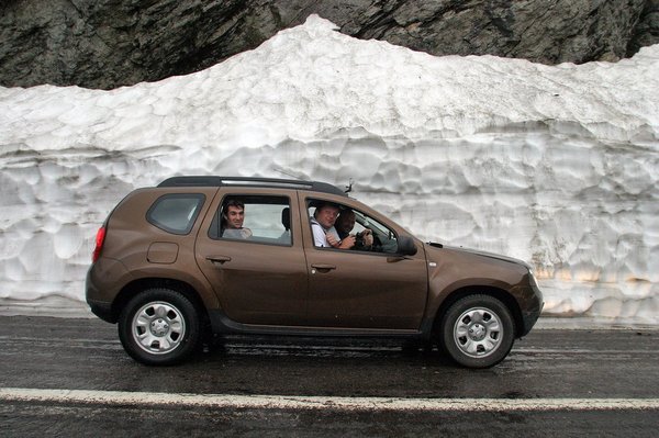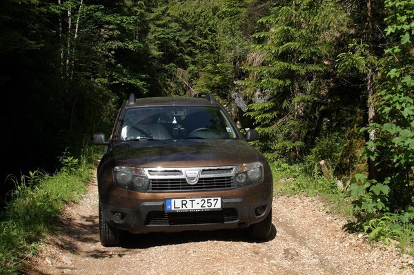 Elinduláskor nagyon meglepő volt a rettentő rövid első-második sebességfokozat.Ötvennél vígan autózunk ötödikben, de 100 km/h körül már nagyon kéri a hatodikat. Valahogy mindig eggyel magasabb sebességfokozatban jártunk, mint egy átlagos autónál. Automataváltóval lenne igazán komfortos a Duster, de gondolom, nem lesz ilyen opció az extrapalettán. Az úton nagyon kulturáltan viselkedett, a nagy kerék és futómű jól tompította a román és magyar utak hibáit, a fék kiegyensúlyozott és hatásos volt. A magas építés ellenére sem volt az autó instabil, élvezetes volt kanyarodni vele, a gumik nagyon jól fogták az utat – egyszóval – a rövid váltót leszámítva – igazi öröm volt a suhanás a hegyi szerpentineken.
