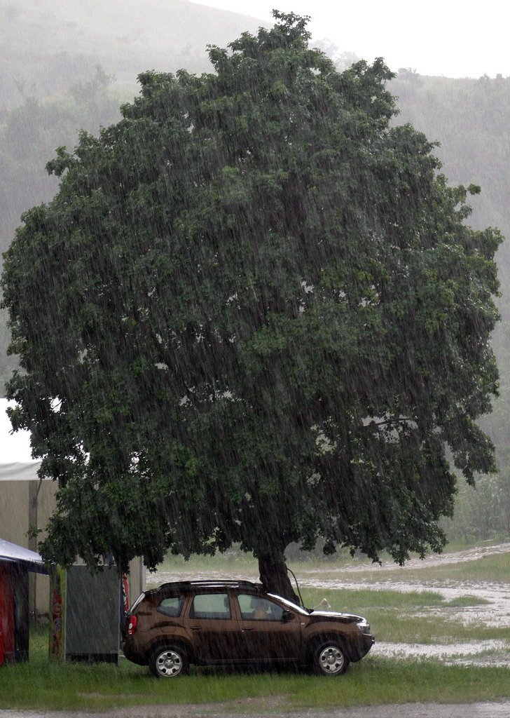 Felvittem a hágó tetejéig a Dustert, ami a hajtűkanyarokkal gazdagon tűzdelt úton megint bebizonyította jó úttartását és kezességét. Lefelé Vitya vezetett, aki szintén megküzdött egy kénköves villámlással és öblös mennydörgésekkel kísért, nagy viharral. Szerencsére ezúttal csak özönvíz volt, jég nem, de így is megszavaztuk a rendületlenül előrehaladó Vityának a Nap Hőse címet.
