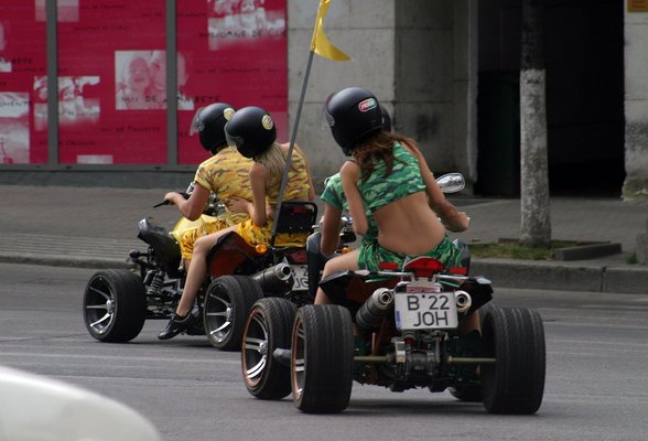 Piatra Neamtban alkalmunk volt kipróbálni az ABS mellé járó vészfékrásegítőt is. Jelentem, működik, de ez a tény szinte mellékes ahhoz képest, hogy miért taposott teljes erővel Vitya a fékpedálra. Nos, azért, mert egész Romániában bimbóznak a lányok. Konkrétan mellbimbóznak, melltartó nélkül lebegtetik a kebleiket a vékony kis trikók és ingek alatt, és ott a zebrán olyan, de olyan lány bimbózott, hogy percekre megállt mind a négy sávon a forgalom. Remélem, ez a lokális divat rövidesen globálisnak bizonyul, és itthon is vészfékezhetünk nagyokat.