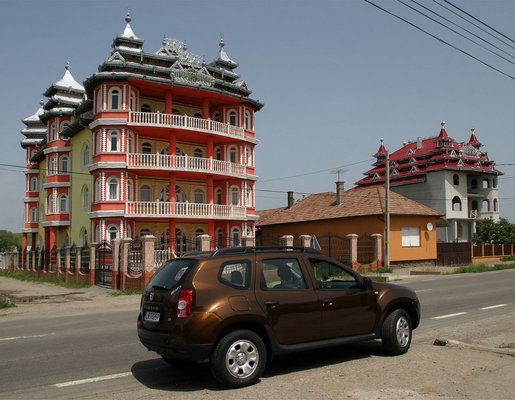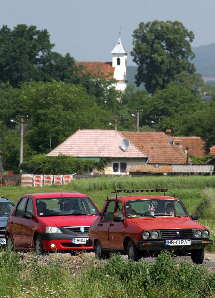 A szoros után nem sokkal egy barátságosan integető rendőrbe futottunk, aki közölte, hogy 50 helyett 70-nel haladtunk, ami roppant helytelen, mert lakott területen vagyunk. Én csak rétet, erdőt meg birkákat láttam, de hát ő nyilván jobban tudja. Segítettem is neki kitölteni a feljelentést, mert ilyen rendes gyerek vagyok, de közben Bopat elmagyarázta, hogy Daciát tesztelünk, így megúsztuk egy figyelmeztetéssel. Természetesen megszavaztuk Bopatnak a Nap Hőse címet, majd örömünkben az első útmenti mosóban lecsutakoltattuk az autót. Rövidesen elértük Piatra Neamtot, ami egy átlagos kinézetű város lenne egy nagyon szép helyen – ha nem dobná fel egy kötélpálya, ami a belvárosból vezet a hegyen levő sípályákhoz. Télen munka után csak bevágja a Piatra Neamt-i ember magát egy kabinba, elhúz a templomtorony mellett meg a helyi menők villái fölött, és már csúszhat is vissza a városba – élni tudni kell, na. Itt volt egy enyhe afférunk is, mert a helyiek nehezményezték, hogy kaján képpel fotózkodunk egy eléggé megviselt állapotban leledző Dacia Lastun előtt. Amikor a Dustert meglátták, megenyhültek – egyébként is, bármerre mentünk, mindenütt forogtak a fejek a kocsi után, nem gondoltam volna, hogy egyszer még egy Daciában kismenőnek fogom érezni magamat.