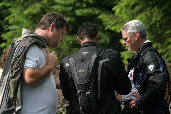 Több mint két órába telt, mire megérkezett a sárga angyal, egy dögnagy markoló, ami kábé másfél perc alatt megnyitotta az utat, a törmeléket szalagkorlátostul betolva a szakadékba. Addigra már jelentős társasági élet alakult ki az út két oldalán. Ausztrál és angol túramotorosokkal ismerkedtünk össze, meg bolgár rendszámú kisteherautón utazó románokkal. Kitalálták? Romániában van regadó, Bulgáriában meg nincs…