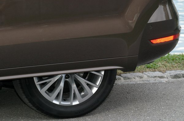 Na, erre már én is jobban szemügyre vettem a járgányt. Elöl a régi, kicsit buta arcot az új VW-dizájnhoz igazították: a szögletes vonalak karakteres formát rajzolnak, az új Sharan tekintetében kétségkívül van valami imponálóan hüllőszerű. A markáns hatást tovább erősítik a közös bura alá applikált, nappali menetfényt szolgáltató fehérfényű ledek. Oldalról nézvést az elnyújtott, hosszú forma eleve elegáns hatást biztosít, az ablakok hangsúlyos krómkeretével a kerékjáratokat összekötő látványos domborítás felesel. A tizenhat vagy tizenhét colos felniken feszülő kerekek szinte teljesen kitöltik a kerékívet. Hátul diszkrét felső spoiler segít hozzá a 0,299-es légellenállási együttható eléréséhez, és a márkaarculatba simuló nagy lámpatestek egyedi mintázása gondoskodik arról, hogy a Sharan sötétben is azonnal felismerhető legyen. Christian azt is rögtön kiszúrta, hogy a műszerfal és a beltér szintén tele van jól megrajzolt, egyszerre funkcionális és esztétikus részletekkel.