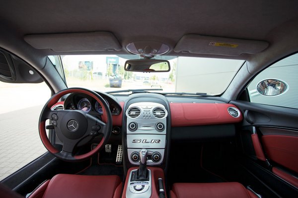 Ennél a modellnél keveseket fog felvillanyozni a tény, de a teljesség kedvéért azért csak leírom, hogy az SLR-nek, ahhoz képest, hogy sportkupé, egészen nagyméretű a csomagtartója, valamint – szintén sportkupés mércével mérve – elég könnyen lehet be- és kiszállni. Benn a piros bőr nagyon szép, az ezüstözött műanyag középkonzol azonban már kevésbé exkluzív, a kormány sem kifejezetten ehhez a modellhez készült.