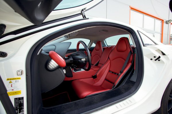 A fékek furán működnek. Alig érek a pedálhoz, máris hirtelen megtorpan a kocsi, utána azonban komoly erőt kell kifejteni, hogy érdemben növeljem a fékhatást, ami mellesleg brutális - komoly fékezésnél a hátsó szárny is előbújik és, mint a repülőgépeknél, segít a lassulásban -, de ez természetes is ekkora motorerő mellet.