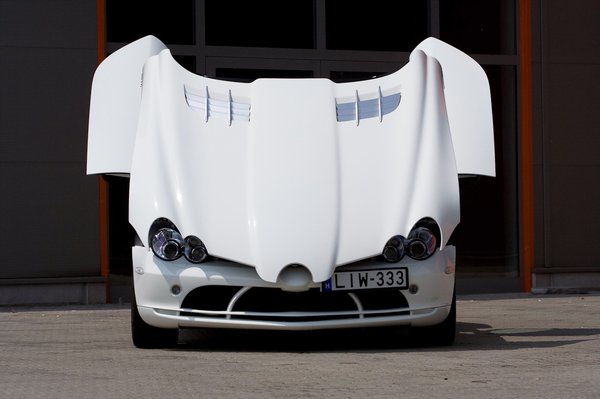 Aki ezt a kocsit elintézi annyival, hogy ez is csak egy Merci, az pontosan annyit tud az autókról, mint én a galapagosi varacskosfejű leguánok párzási szokásairól. Kezdjük ott, hogy az egész kasztni szénszálas műanyag – ha felnyitjuk a motorháztetőt, alatta a fényezetlenül hagyott felületeken láthatjuk is az összetéveszthetetlen fekete mintázatot.