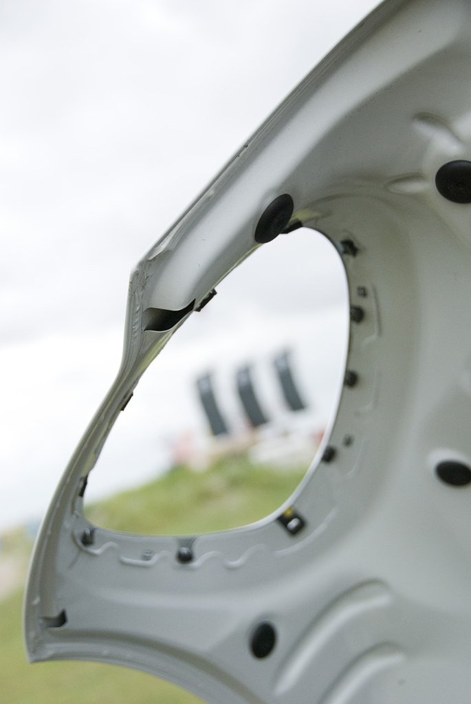 Az első lámpák helye igazán vicces: ha felnyitjuk a motorháztetőt, nagy lyukak maradnak a lemezben – simán bedughatjuk a fejünket. A hűtőrács viszont sokkal nagyobb autót idéz, formája egyértelműen az Aston Martinéra emlékeztet.