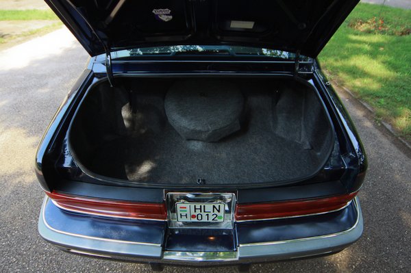Miután lebeszéltem a tesztet, kerestem képeket a Buickról, és a gyári kerekekkel kifejezetten csúnyának találtam. Nem csoda, számomra a 90-es évek a formatervezés legsötétebb kora, országtól függetlenül. A tulajdonos ízlését dicséri, hogy a négy 17-es felni a 255-ös gumikkal az egész autót széppé varázsolta. Floridai nyugdíjasok bevesárlókocsijából az a fajta gengszterautó lett, amivel Stevie Mohawk furikázhatott maffai-karrierje hajnalán, 5 bűntársával együtt. Így tett Jack Nicholson is a Téglában. Vagy a strici a Másik Énben, csak ő kalácsra törte. Ráadásul bőven négyhullás a csomagtartó, 595 liter. Vagyis, lehet hogy csak három. A negyediknek elég kényelmetlen lenne az utolsó útja. Útban van ugyanis az eléggé fura helyen található pótkerék: a csomagtér belső falának közepéhez van döntve. De legalább letakarták.