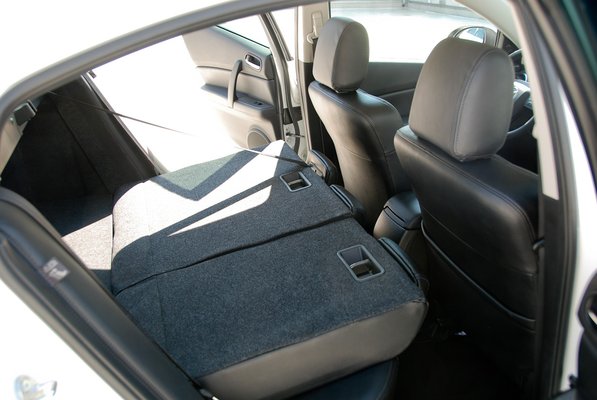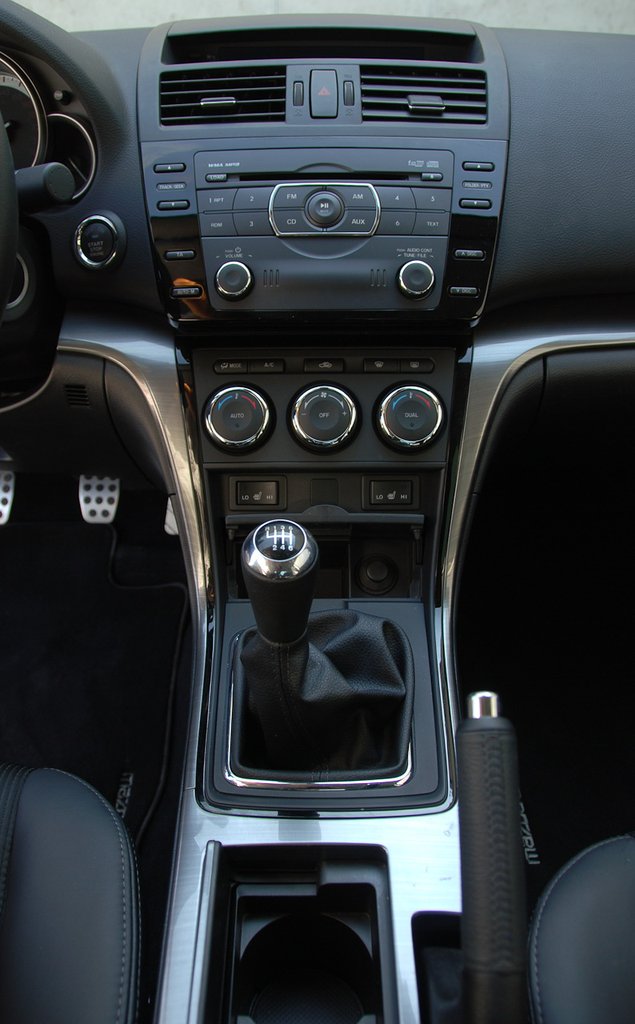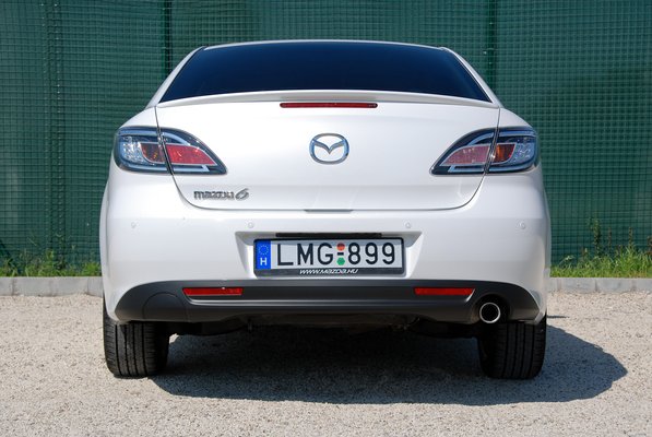 A következő kulcsszó a bél és a lámpa után a tér. Biztos vagyok benne, hogy mindkét japánt messze veri térkínálatban, ha nagyon akarom, akkor az európai konkurensek (Laguna, 407) is lesütött szemmel állnak, egyszerűen nagy belül. A 4755 milliméteres hossz 2725 milliméteres tengelytávval párosul, összehasonlításképpen íme az Accord, Avensis és 407-es azonos adatai: 4725x2705, 4695x2700, 4691x2725. Ugye, hogy alig van eltérés? Mégis, ha sorban beülnek, valahogy egyértelmű sorrendet lesznek képesek felállítani. És ott ez a Mazda6 nyer. Ja, és a csomagtartója 519 liter, ami minden, csak nem kevés. Így nem csak a pöttöm Akihiro császár, de bárki más is nyugodtan dőlhet hátra a félbőr ülésekben, nyugalom, zen, pihenés.