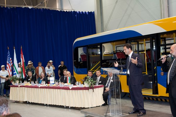 Az ilyen rendezvények általában a protokoll jegyében zajlanak, eleinte itt sem volt másképp. Sajnos, a Budapestről érkező újságírókat szállító mikrobuszok késtek, így a program az üzemlátogatás helyett egyből az ünnepélyes szakasszal indult. A Sirius, a NABI magyar piacra szánt városi autóbusza akkora lepel alatt pihent, mint egy kisebb lakás. A díszvendégek között a NABI elnök-vezérigazgatójától, az amerikai követség kereskedelmi attaséján át a Nemzeti Fejlesztési Minisztérium államtitkáráig sok prominens személy üldögélt, többségük beszédet is mondott.