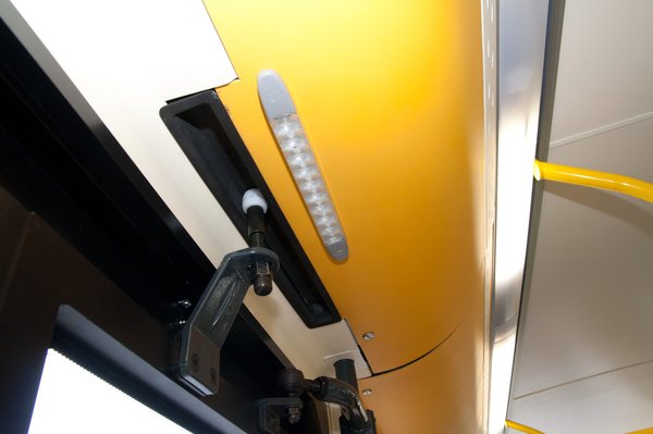 Az utastér kialakítása kifejezetten szép, a főkonstruktőr is azt mondja, fő szempont volt, hogy az utasok vonzónak találják a járművet. A kapaszkodók elérhető magasságban vannak, és van belőlük elég, aki ült állt már a BKV használt Van Hooljain, az értékeli ezt. A babakocsiknak, kerekes székeknek kialakított szekció a középső ajtónál van, itt három lehajtható ülés található, a többi 33 ülés fix. A gyári adatok 71 állóhelyet említenek, de nem szívesen próbálnám ki, mit jelent a gyakorlatban. Fogadjuk el elméleti értéknek, amitől még nem szakad be a padló –nehogy valamelyik közlekedési vállalat menetrend-készítői ilyen kihasználtságot vegyenek célba.