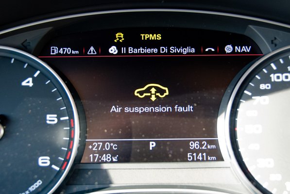 A következő elindulásnál viszont az alig ötezer kilométert futott autóban szembesülnöm kellett azzal, amitől minden modern autó tulajdonosa retteg a garancia lejárta után: elkezdett hibaüzenetekkel bombázni az elektronikus rendszereket felügyelő nagy testvér. A sportdifferenciálmű, a légrugó, az ESP és a fékasszisztens vezérlése egymás után jelentett zavart az erőben, ami nem megnyugtató előjel, még akkor sem, ha előszériás autókról van szó. Változatlanul tovább lehetett menni a pezsgőszínű batárral, pár perc múlva meg is nyugodott, és néhány újraindítás után már nem is jelezte a hibát a műszeregységen, de az összetett elektronikába vetett eddig sem túl nagy bizalmamat tovább rombolta az apró malőr.