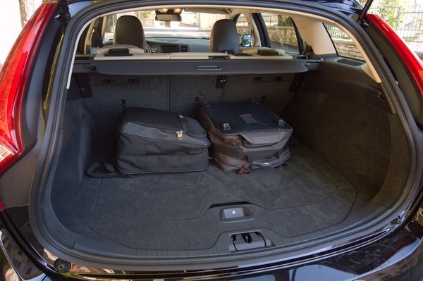 Különben meg… bár a kerekdedebb formák miatt szűkebbnek gondolja az ember, a V60 egyáltalán nem kicsi belül, azaz, mint szinte minden presztízs-középkategóriás, inkább olyan kellemesen passzentos. Elöl-hátul van benne hely, a fejeknek is, széltében végképp, igaz, a csomagtartó vicces, legfeljebb kompakt ferdehátú mércével tágas. Hiszen – hihi – 430 literes.