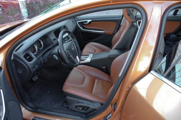 Szó sincs róla, hogy az S60-as kemény sportszedán volna – ha valaki mondjuk a reklámkampány túlzásai alapján ilyesmit gondolna, az nagyot fog csalódni, legkésőbb a beszállás pillanatában. Belül a prémiumkategóriában megszokott kényelem és minőség fogad. Elöl nagy, puha fotelek várnak, amelyek csak annyira tartják a törzset, amennyire ahhoz kell, hogy kanyarban ne essünk ki belőlük. A műszerfal puha, kellemes tapintású műanyag, a bőrkárpitok puhák és vaskosnak tűnnek, mégsem izzasztóak, és minden burkolat tökéletesen illeszkedik, ahogy egy drága autóban el is várhatjuk.