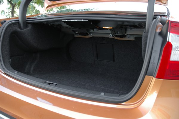 A csomagtér 380 literes, ami kevésnek tűnik, de a hétköznapokban még elegendő. Cserébe eléggé szabályos, csaknem hasáb formájú, és egy, a padlójából felnyíló elemmel kettéosztható, ami hatékonyan akadályozza meg, hogy a bevásárlás után a szatyrok összevissza csúszkáljanak odabent. Legfeljebb a rövid csomagtérajtó lehet zavaró, ha nagyobb tárgyakat akarnánk betenni, de ezt az áldozatot megköveteli a csinos formaterv. Akit mégis idegesítene egy ilyen apróság, az jobban jár, ha kivárja a V60-as érkezését, az, ha nem is sokkal tágasabb hátul, de könnyebben variálható és pakolható.
