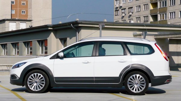 A találmány zsenialitását az adja, hogy ilyen kiegészítőkkel különleges, drága és sokodalúan használható presztízsautókat szoktak felszerelni. Audi Allroad Quattro, Volvo XC70, a Fordnak pedig van annyira jó renoméja, hogy az ember egy körbeműanyagozott Focusról elhiggye, egyfajta kölni Allroadot kap. Elvégre a Ford a Volvo rokona, biztos, ők is megcsinálták a maguk XC 70-esét. Hogy tökéletes legyen a megtévesztés, a tesztautó a Ford magasabbik, Titanium felszereltségét kapta DSG automata váltóval, kétliteres dízellel.
