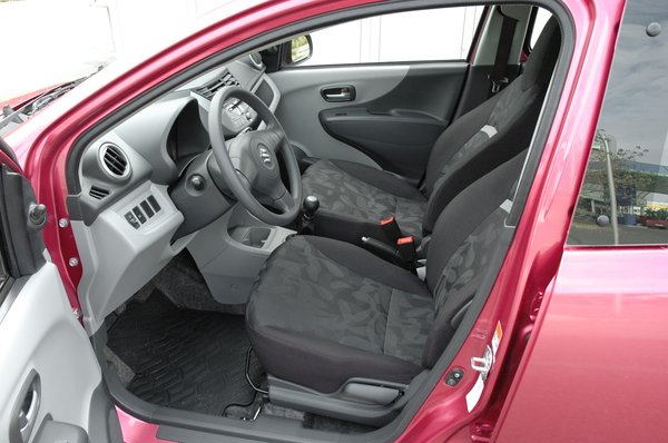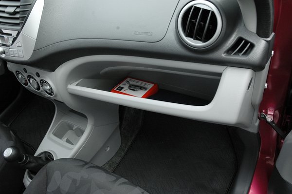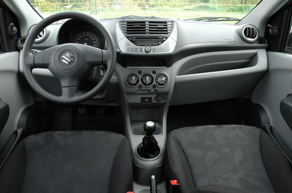 Elsősorban a belső térrel kapcsolatos igencsak vegyes benyomásokkal birkóztam sokáig. Számítottam a szürke, acélkemény műanyagokra, jobbat a drágább Suzukikban is csak elvétve találni. Az egyszerű formák sem zavartak, láttam már sokkal borzasztóbb megoldásokat sokkal drágább gépekben. Az egy szem, hatalmas sebességmérő még tetszett is – akár valami régi autón, olyan, és legalább nem építettek órát a fordulatszámmérő helyére, amit az iparág legszánalmasabb spórolási módszerének tartok. A tükörállító kocsányok is inkább csak tréfásak, mint zavarók – két kicsi, felfelé meredő, bunkós végű izé. Vajon mire asszociálhattam volna egy női autóban? Van néhány nagyon ügyes apróság is, mint a rádió alatti rekesz aljára ragasztott peremes gumi, amitől a hirtelen bedobált lomok – mobiltelefon, parkolókártya, öngyújtó, aprópénz – nem potyognak a lábtérbe menet közben sem. Filléres figyelmesség, ami a legtöbb mai kocsiból mégis hiányzik.