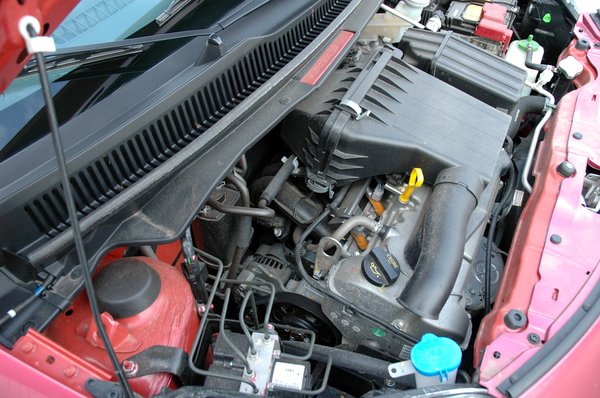 A motor hangja külön is megér egy misét. Talán a kevés hangszigetelés az oka, talán más, de az orgánumában nagyobb fordulaton több van a Wartburgok jellegzetes, fémes süvöltéséből, mint bármelyik másik háromhengeres motorban, amihez eddig szerencsém volt. Az ezres egyáltalán nem halk, főként mivel a tempós haladáshoz folyamatosan pörgetni kell, de egyáltalán nem éreztem kellemetlennek vagy idegesítőnek a hangfekvését. Határozottan jó motor ez, és nem is különösebben iszákos: a kínzások ellenére 7 liter alatti fogyasztást produkált 100 kilométeren. Ez ugyan elég messze van a 4,4 literes átlagtól, amit a gyártó megad, de zömmel városban nyúztam, és messze nem a szabvány ciklus kíméletességével, így ez az érték elfogadhatónak tűnik.