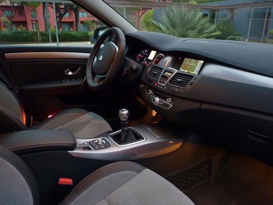 A tesztflottát dízel Lagunák alkották, mi egy 180 lóerős 2.0 dCi-vel vágtunk neki a 130 kilométeres etapnak. Ez a motor remekül illik az autó karakteréhez, kellő dinamikával mozgatja az 1480 kg tömegű testet, és mindig van benne tartalék is. A hangszigetelést tovább csiszolgatták az új Lagunában a mérnökök, így csak gyorsításkor zajong kicsit a motor, épp annyira, hogy érezzük, van itt kakaó, kérem. A hang karaktere nem dízeles, inkább olyan jófajta morgós. A hatfokú manuális váltó viszont továbbra sem vezeti a kezet, a semmiben kutyulva keresi az ember a fokozatokat az eső tíz percben. Azután persze megszokja, melyik hol van, és a következő években már nem lesz gondja vele. A multifunkciós kormány karimájának alsó szakaszát egyenesre vágták, ahogy az mostanában divatos. A forgatása során a hidraulikus (a kisebb teljesítményű verziókban elektromos) szervónak köszönhetően nem ütközünk nagy ellenállásba, de az autó karakteréhez ez teljesen megfelel. A volán minden irányban állítható, a motoros állítású ülések tökéletesen pozícionálhatók, a sok automatika (világítás, ablaktörlő, tolatóradar és társaik) sok apró gondot levesznek a sofőr válláról. Más kérdés, hogy ezeket az apró gondokat is nagyon szeretem a vezetésben.