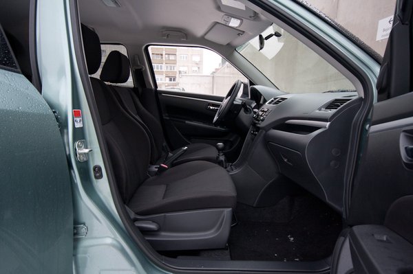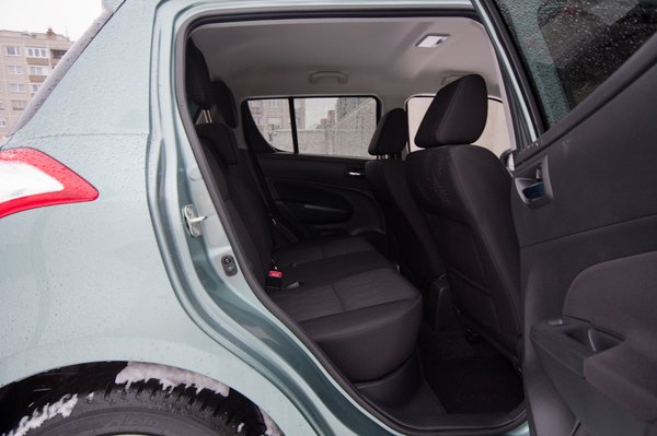 Bravúros, hogy a Swift III. az elődhöz képest 9 centivel hosszabb, fél centivel szélesebb, de talán az 5 centis tengelytáv-növekedés az igazán fontos, mérvadó adat a helykínálat szempontjából. Na de a bravúr nem ez, a bravúr az, hogy közvetlenül átülve a kifutóból az újba, nem érzem, hogy egy milliméterrel is több volna a hely. Sem elöl, sem hátul. Hátul nagyjából ugyanaz a helyzet, mint volt: valahogy beékeljük magunkat, a térdeinket a vezetőülés támlájába mélyesztjük, és elvagyunk. Már csak ezért is gyanakodtam annyira a faceliftre Esztergomban: ugyanakkora a hely elöl-hátul, csomagtartó továbbra sincs (plusz tíz literrel így most 211 liter, alig a Mazda MX-5 felett). Aztán beült anyám a saját Swiftjével tett kontrollkör után, és megállapította, hogy ez szűkebb, mint az övé. Hát igen, a feljebb húzott övvonal rontja a térérzetet. Kívülről jobban néz ki, törésteszten is valószínűleg jobban teljesít az autó, de ha valaki nem kedveli kifejezetten, ha elvermelik, az rosszabbul érzi benne magát.