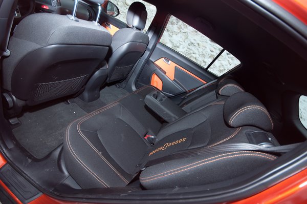 A jó ízlés bent is folytatódik. Az első maszkra hasonlító műszerfalbetét-kiképzés trükkjét már egyszer láttuk valami olasz autóban, de itt is hat. Nem különösen igényesek a műanyagok – az ajtókárpit fényes, fekete, kőkemény, a műszerfal fölső része puha, matt, s középen is matt, viszont kemény - a formavilág viszont száztíz százalékos. Ez itt a legérdekesebb, mégis a legotthonosabb kocsi, ebben persze szerepe van az igazán ügyes, narancsszín betéteknek és varrásoknak is, ami a százezer forintos Orange csomag része. Ülni is ebben a legszuperebb. Ülésfűtés ugyan nincs, de a szövet szinte azonnal melegnek érződik, ráadásul kényelmes is. Egyébként messze ebben az autóban állítható legalacsonyabbra az ülés is a három közül, nekem ez szimpatikusabb, mint a furgonos helyzet. Aki pedig aggódik, hogy nem lát messze előre, simán feljebb tekerheti az ülésmagasságot. Kényelmes, otthonos gép, kár, hogy például a műszerfal tetején levő puha betét képtelen követni a váz kemény műanyagból öntött vonalát – azért az összeszerelés közel sem tökéletes.