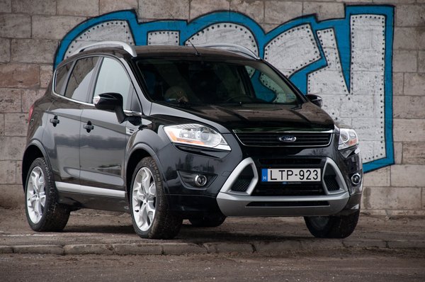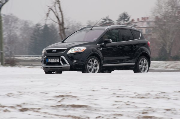 A számtalan fórumon halálba dicsért futómű tényleg hozza, amit mesélnek róla. Finoman rugózik a kis törmeléken, szépen simítja a közepes huplikat, mindeközben a kormány SUV-okat meghazudtoló módon pontos, életteli, már-már (de csak már-már) Focus-szintű. A karosszéria alig dől a kanyarban, kikapcsolt ESP-vel, kicsit orrkitolósan ugyan, de viszonylag hitelesen játszhatjuk el Stig Blomqvistet. Azért van itt is baj, de nem vészes. A futóművet ugyan a legrosszabb fajta nyugat-európai utak figyelembevételével tervezték, de nem az átlagosan pocsék kelet-európaiakhoz. Egy-egy tehetséges magyar bukkanón áthajtva a hátsó felfügesztés nagyot rúg, szinte dühösen. Az a fránya motor pedig belenget a luxusautó-élménynek – hidegen száz ütvefúró hangján kerreg, és amikor a bemelegedést követően elhalkul, akkor is marad a zajából egyfaja visszafogott, de kellemetlen, távoli kávédaráló-morgás. A dízelzaj nem tűnik el nagy sebességnél, állandó fordulaton sem, mint sok, mai tédéből, hanem folyamatosan kísér minket. Hiába szupercsendes hát a Kuga minden egyéb téren, a motor kellemetlen zajszíne beszivárog a réseken.