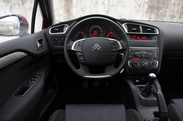 Aztán jönnek a szokatlan dolgok: a kormány egyszerűen kerek és forog, a közepét megnyomva pedig dudál. Egy Citroënben ez jó hír. A régiben használt, álló kormányközepű kormány elég öncélú valami volt. Nincs vele semmi bajom, kétségkívül egyedi ötlet, de senki sem tudná megmondani, hogy mi szükség volt rá. A rádió, a telefon, a tempomat gombjai a szimpla kormányra is ráférnek. Legnagyobb meglepetésemre a belső világítás, a Saabtól kölcsönzött black panel (a felesleges műszerek lekapcsolása) működhet a kormányról, sőt, még a műszerek fényereje is szabályozható innen. Akkor meg?