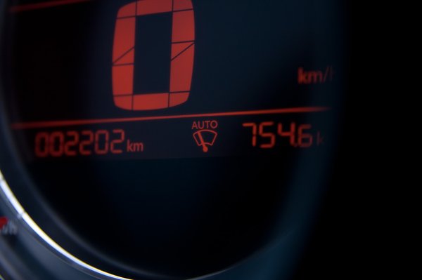 Semmi átlátszó futurista baromság a műszerfal közepén, bár ez is inkább digitális, mint analóg. A fordulatszámmérőnek és a sebességmérőnek van klasszikus skálája is, az infók többségét a közepükön lévő, digitális kijelző adja. Sőt, a sebességmérőnek van egy pirinyó mutatószerűsége is, de egyszerűbb a nagy számot leolvasni középről, mint ezt keresgélni. A fordulatszámmérőnél már ennyi sincs, csak a fények futkároznak körbe – igazából sosem tudtam, hogy mennyit forog a motor. Néha felvillant a felkapcsolási figyelmeztetés, de tényleg csak akkor, ha szükség volt rá, nem lihegte túl a melót. Na, ez már feltűnő, mert az egész kijelzőt betölti.