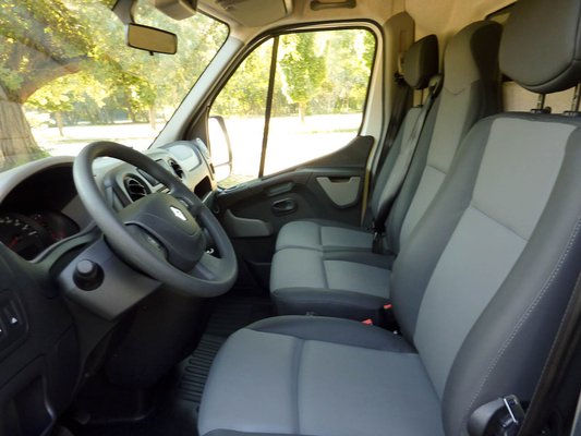 A kormány lapos, teherautós szögben áll, bár a Renault bizonygatja, mennyire személyautós élmény a Master, hát nem az. A kakasülőn ülve laza pózban, mindenki felett átnézve szinte automatikusan nyúlnánk a CB-ért, hogy levajazzunk egy jó kis csilisbabot a következő útszéli étteremben, annyira teherautós. Az érzésről nagymértékben tehet a hosszú úton járó váltó, a diszkrét difihang és az Opelhez képest jóval hangosabb motor.