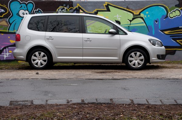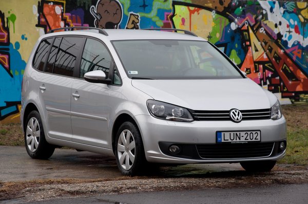 A motorja – egynégyes. A kerekei – lemezfelnik, műanyag dísztárcsákkal. A fényezése – jajjajjajjajjjjjj – ezüstmetál. Leánykori nevén metálszürke. Metánszürke, propánszürke, butánszürke, bután szürke. Hörrrrrrr, már érzem is a fojtogató markot a gigámon. És erről kell tesztet írnom. Legalább miért nem egy jó Ducatóról? Chevy Sparkról? Miért én? Miért nem a Papp Tibi? Miért, miért? Hiszen a Rácz Tomi már 2007-ben zseniálisan megírta ezt a tesztet, ugyanez a Touran volt, ugyanezzel a motorral, facelift előtt, annál nem kell jobb. Még vers is volt a cikkben, meg a kék fényre való szemérzékenység-analízis Orosz Peti tollából, aki mellesleg doktor. És már azt az anyagot is én fotóztam, közel ugyanennyire pocsék időben.