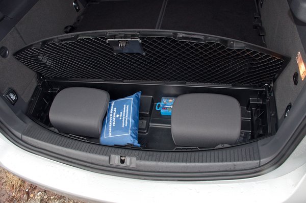 Ha németes rendet és biztonságot akarunk, ilyenkor azért kell velük legózni. A kiszedett kalaptartó rögzítésének helyeit le kell takarnunk két, a csomagtartó padlója alatti üregben elrejtett fedélkével. És ha már egyszer itt turkálunk, kivehetjük és beszúrhatjuk helyükre a fejtámlákat is, amelyek használaton kívül szintén az alsó üregben laknak.
