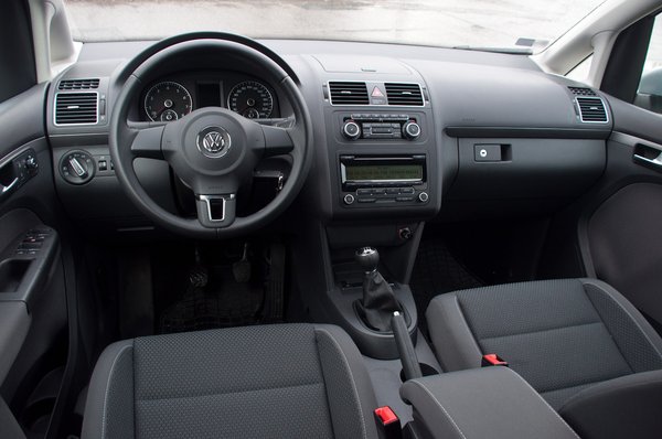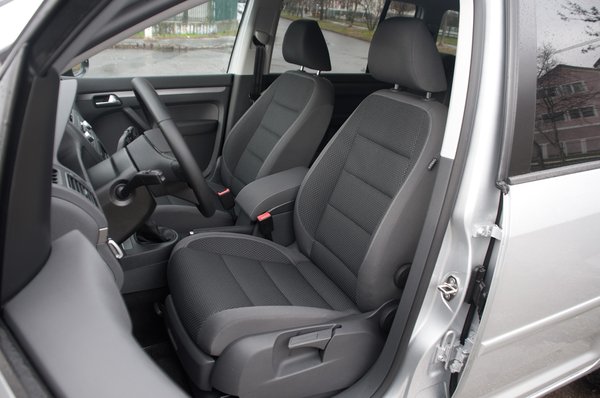 Egy régebbi konstrukciós hibával sem számoltak le Volkswagenék, az első ülőlapokat oldalról határoló, kemény, műanyag széllel. Ha sokat kell ki-be szállni, a vezető hamar összegyűjt néhány lila foltot a bal, az utas pedig a jobb combjának aljára. Egy sima Golfnál nem lenne zavaró ez, mert abba lefelé huppan a test, de a Touranba vízszintesen kell besiklani – ami elvileg kényelmesebbé teszi a beszállást, ezért is szeretik az ilyen autókat az idősek –, ám ehhez a miniatűr kínai fal nagyon útban van.