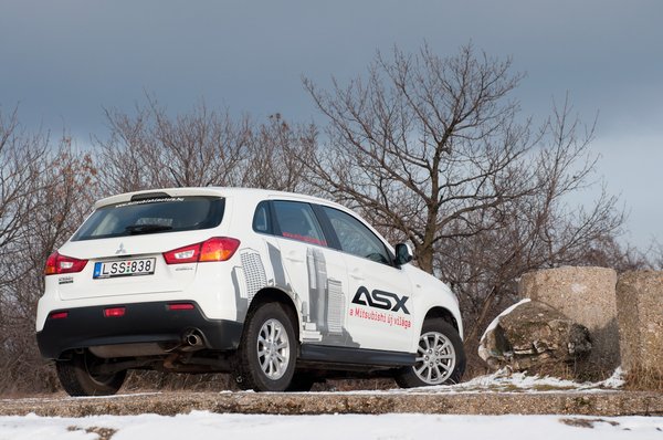 Elölről jól néz ki. Majdnem olyan jól, mint a Lancer, s ez helyből garantálja az ASX-nek, hogy kiemelkedjen a kéttucatnyi egyéb SUV közül. Arca van. Hátulról már nem annyira ügyes. Valahogy az a kicsi kerék nagyon egyedül érzi magát a terjengős lemezsivatagban, és hiába jó a hátsó lámpa formája, az sem találja a hangot a karosszéria többi részével. Elöl jó, hátul rossz, ez van, legalább a félsiker zajos.