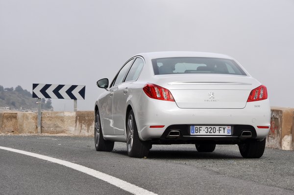 A kormány, az igazából a fenomenális. Olyan informatív, mint egy orosz–amerikai kettős ügynök, azt is érzem rajta, amikor egy meggymagon gondolatnyit oldalra moccan az első kerék. Ujjbeggyel olvasom az utat, a kormányon csak precíz utasítások mennek odafelé, tiszta, pontos kommunikáció zajlik visszafelé. Nem tudom, hogy van-e ma limuzin, amelyiknek jobb kormánya lenne ennél. Összehasonlításban a normál 508-as már kicsit szorulósnak, kelletlennek tűnik, holott amúgy az is igen jó. Ez viszont klasszis, hátsókerék-hajtásos kocsikat közelítően ügyes.