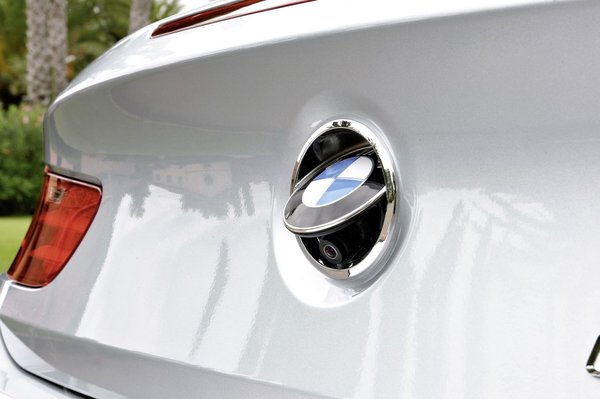 Nekem kicsit búcsús a motorháztető oldalán a műkróm betétes, műanyag beömlő, de az is lehet, hogy ettől lesz klasszikus, ha megéri a plasztik. A kilincseken is van egy kis műkróm – még nem egészen értem, miért hangsúlyozzák így a kilincset, ha a kabrió BMW-hagyományban épp a rejtett kilincs volna a lényeg. A motorgyártás is mintha az ellentétes irányba tartana – a Harley-Davidson, pont a Harley-Davidson kezdi mániákusan dugdosni a krómokat és hangsúlyozni a matt felületeket. Persze egy ekkora hajóra jutott matt fémfelület is, fénytelen alumínium keretezi az első tetőoszlopokat és végig az övvonalat. A felni is matt alumínium – érdekes, hogy nem üt be olyan gyorsan, mint az előző M6 gótikus felniorgazmusai, de valószínűleg okos dizájn, csak még nézegetni kell. Aztán ha az alját nézegetjük, a matt alumínium felnik után jön egy kis fényes króm kipufogóvég. Nekem sok.