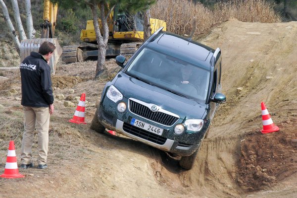 Mielőtt elindultunk volna a Yetikkel, pár mondatos okítást kapunk. Be kell kapcsolnunk az off-road gombot, és ha lejtőhöz érünk, nem kell birizgálni se a gázt, se a féket. Levisz. Ha a motort lefullasztjuk, akkor is. Sőt, hátramenetben is.