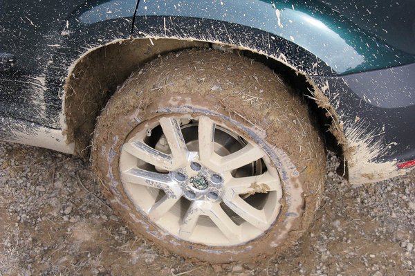 A yetizésen az előttem lévő autóban Kovács Andi, a PoHu sajtómunkatársa ült, aki nem sorolta magát a nagy terepezők közé, sőt, még a DSG váltóhoz sem volt igazán hozzászokva. Ezzel az előképzettséggel is gond nélkül ment le-föl a terepen, pedig néhol iszonyatos sár volt egy korábbi eső miatt. Néha egy-egy kereke is a levegőben volt, amit persze azonnal állóra fékezett az ESP diffizár funkciója.